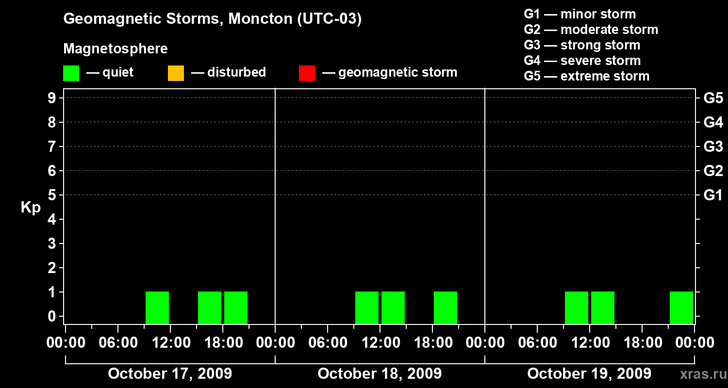Geomagnetic storms in Moncton on Oct 19, 2009