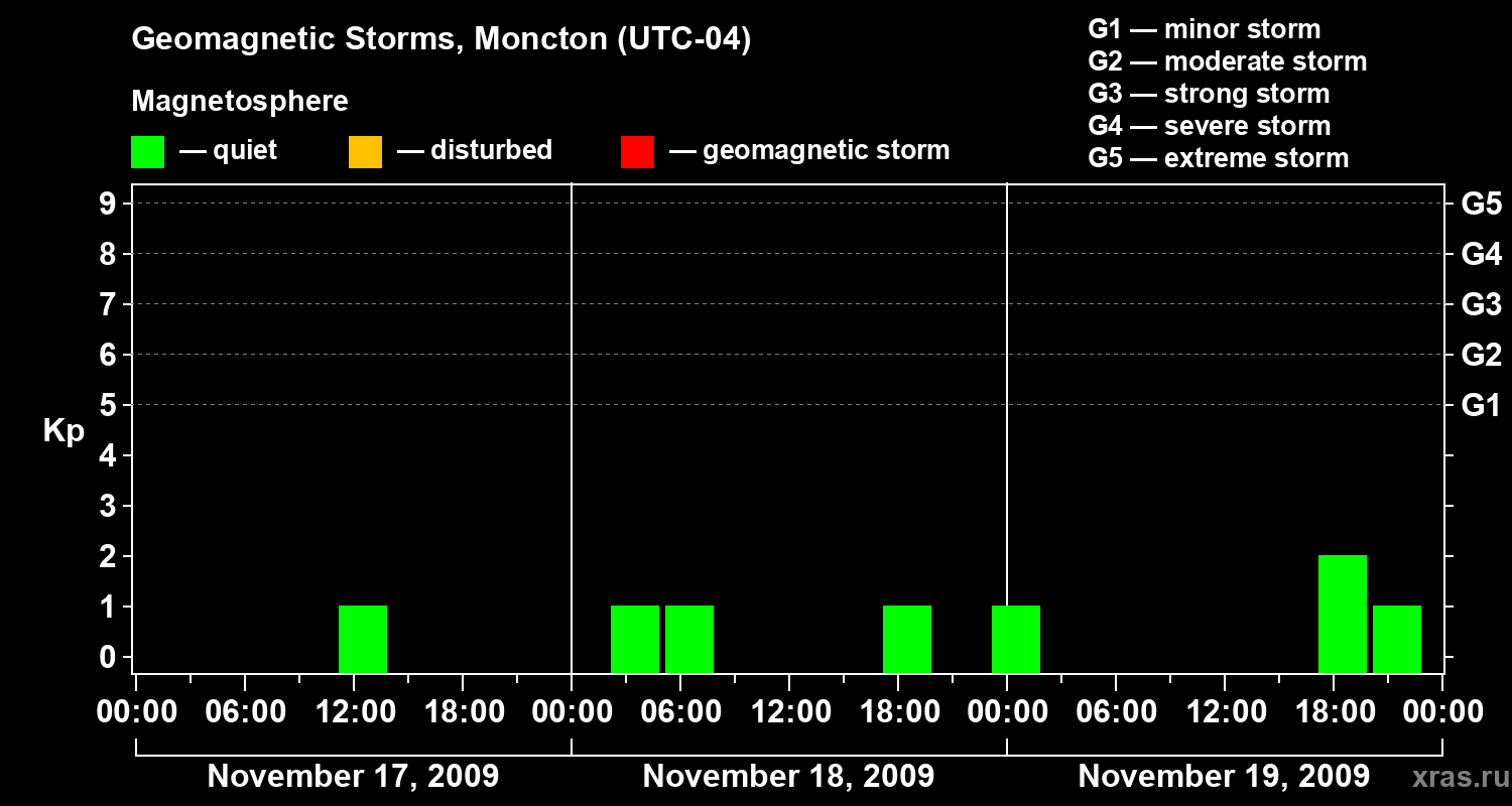 Geomagnetic storms in Moncton in November 2009