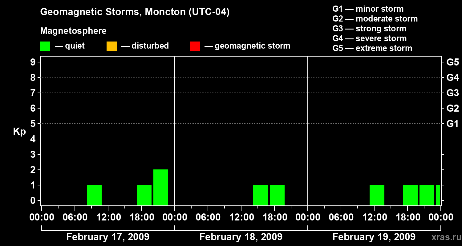 Geomagnetic storms in Moncton in February 2009
