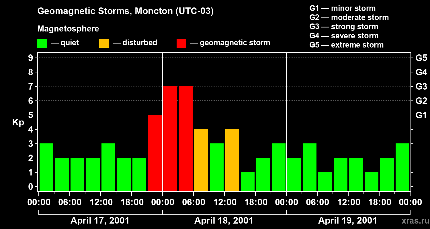 Geomagnetic storms in Moncton on Apr 19, 2001