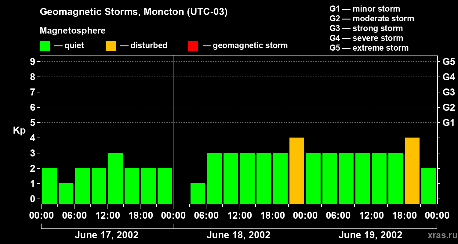 Geomagnetic storms in Moncton on Jun 19, 2002