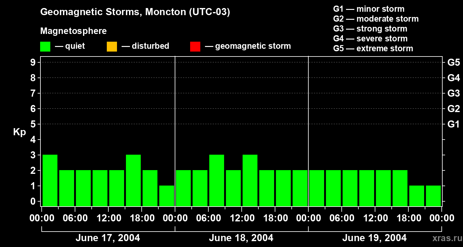 Geomagnetic storms in Moncton on Jun 19, 2004