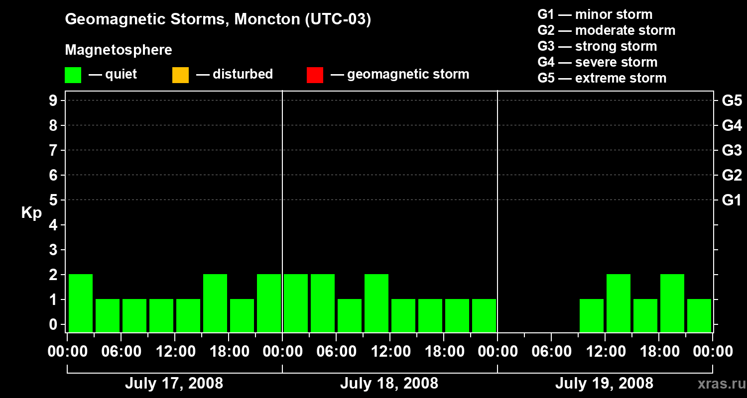 Geomagnetic storms in Moncton — Jul 19, 2008