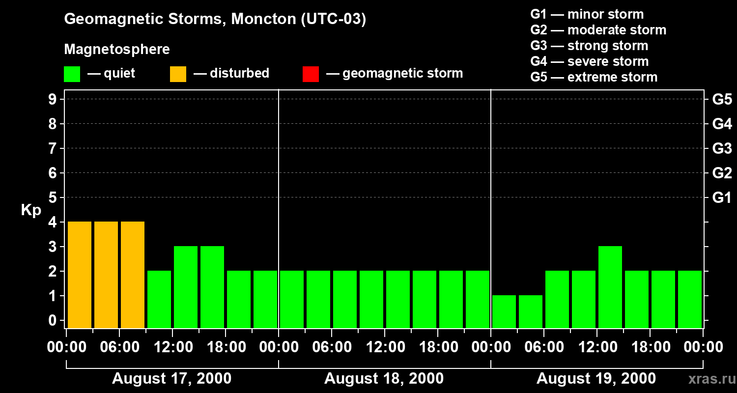 Geomagnetic storms in Moncton on Aug 19, 2000