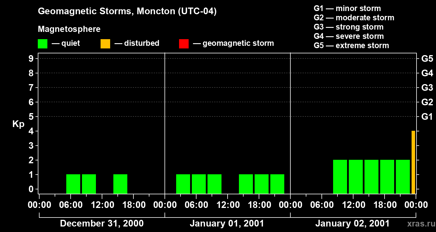 Geomagnetic storms in Moncton on Jan 02, 2001
