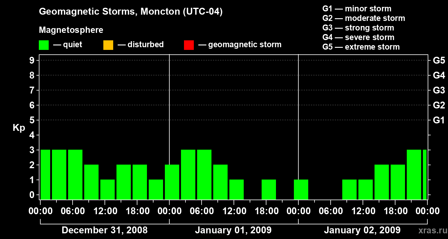 Geomagnetic storms in Moncton — Jan 02, 2009