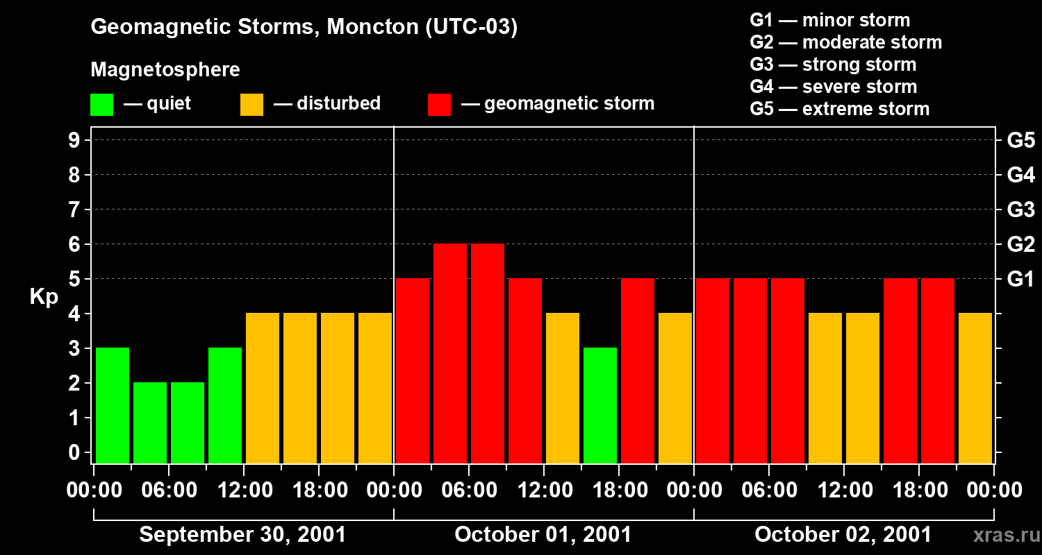 Geomagnetic storms in Moncton — Oct 02, 2001