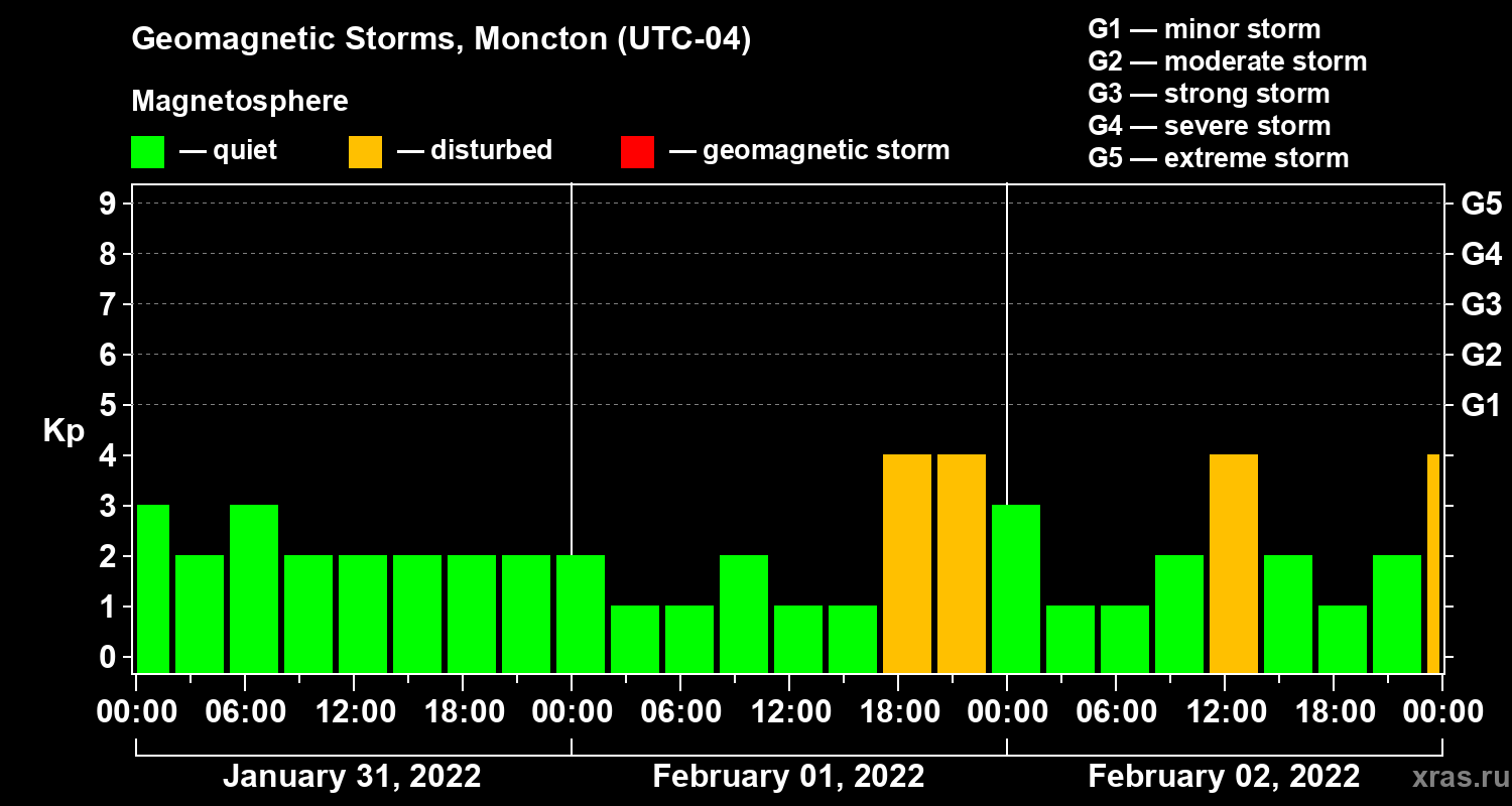 Geomagnetic storms in Moncton — Feb 02, 2022