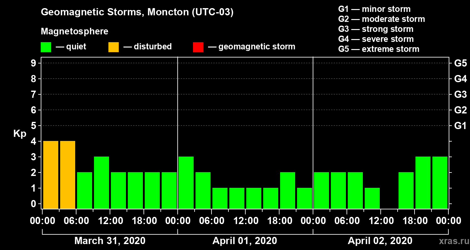 Geomagnetic storms in Moncton — Apr 02, 2020
