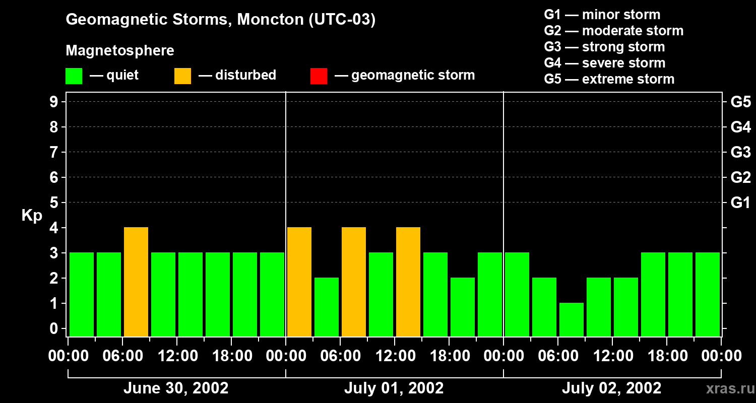Geomagnetic storms in Moncton — Jul 02, 2002
