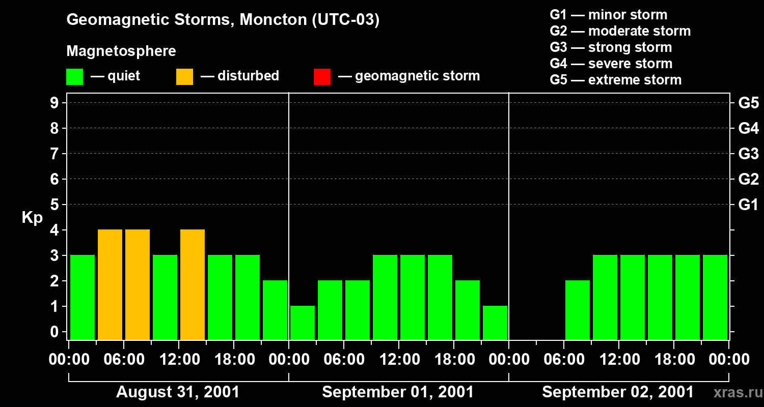 Geomagnetic storms in Moncton — Sep 02, 2001