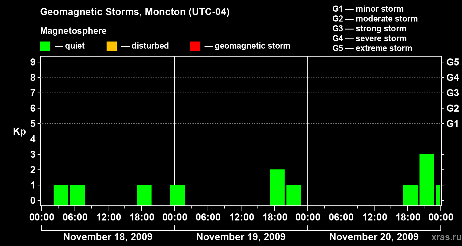 Geomagnetic storms in Moncton on Nov 20, 2009