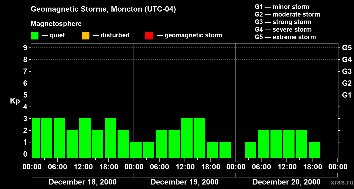 Geomagnetic storms in Moncton on Dec 20, 2000