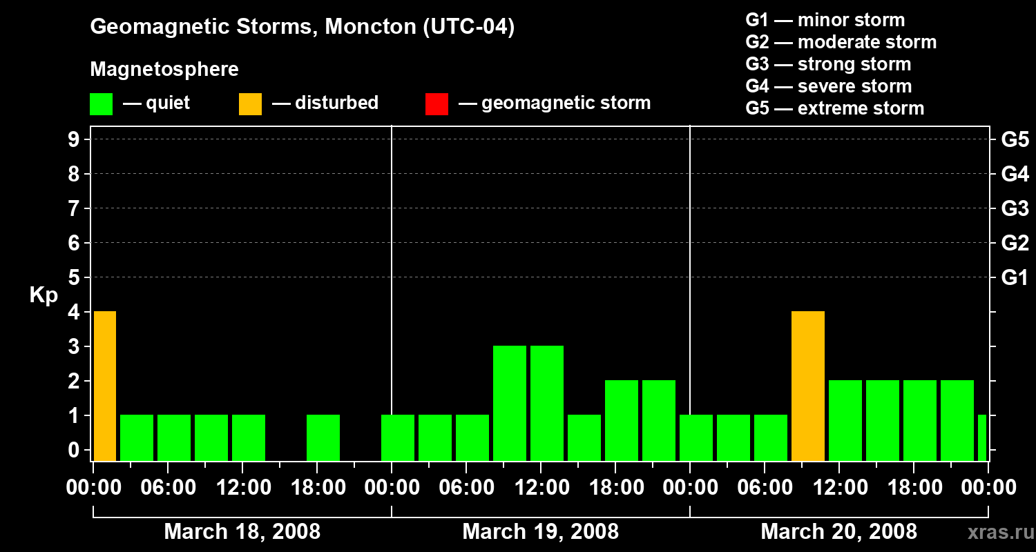 Geomagnetic storms in Moncton — Mar 20, 2008
