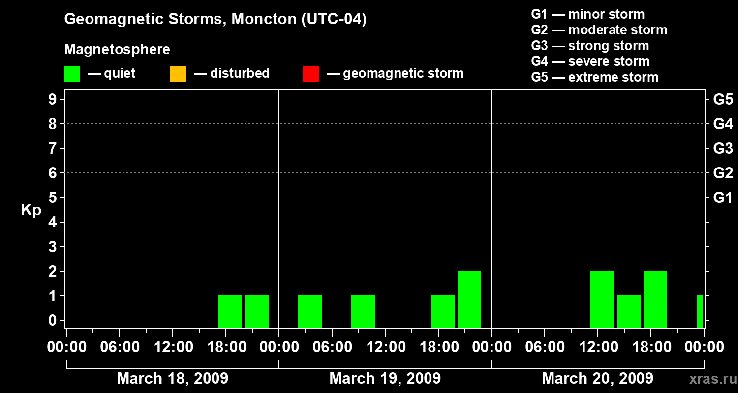 Geomagnetic storms in Moncton — Mar 20, 2009