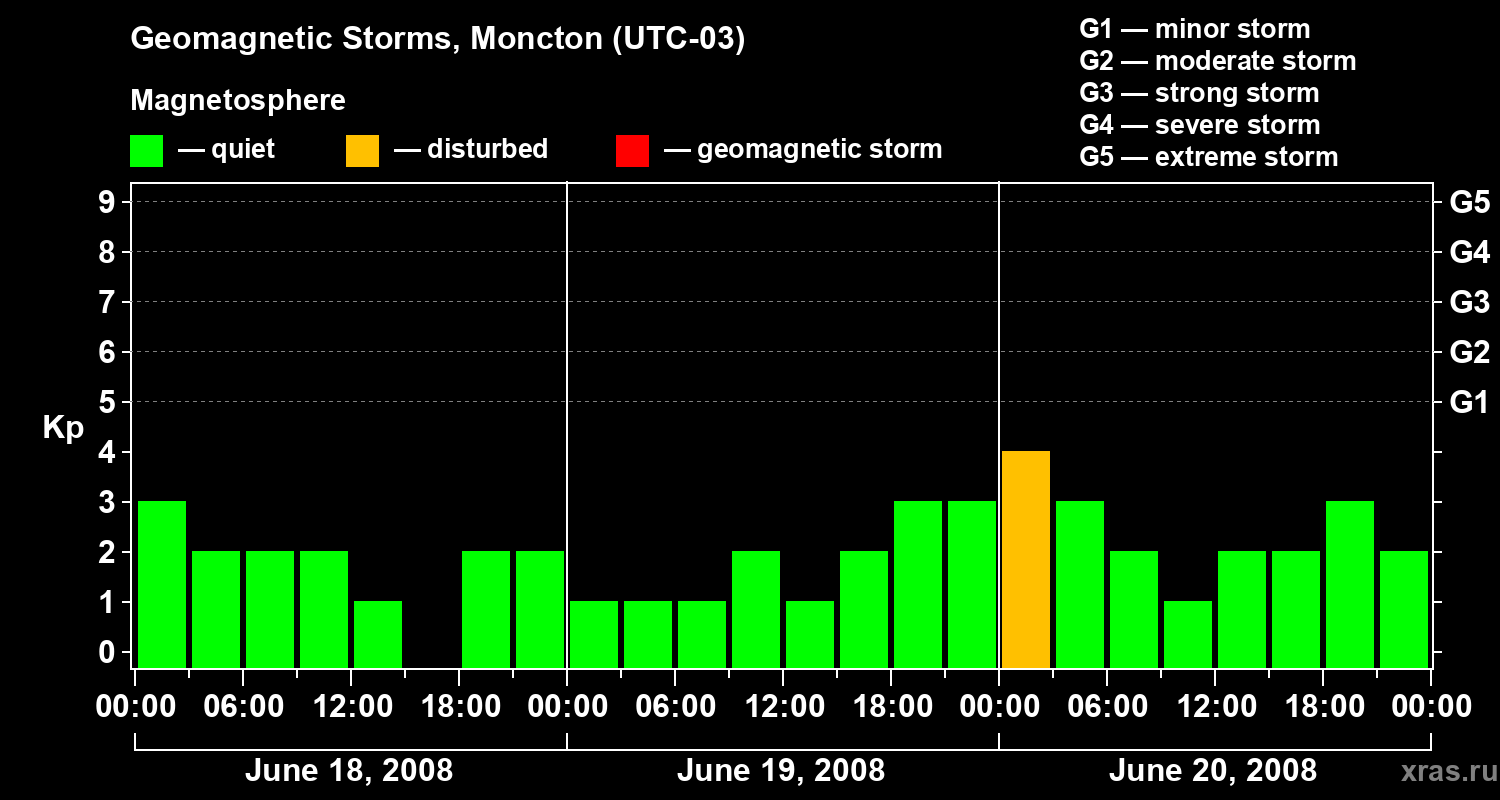 Geomagnetic storms in Moncton — Jun 20, 2008