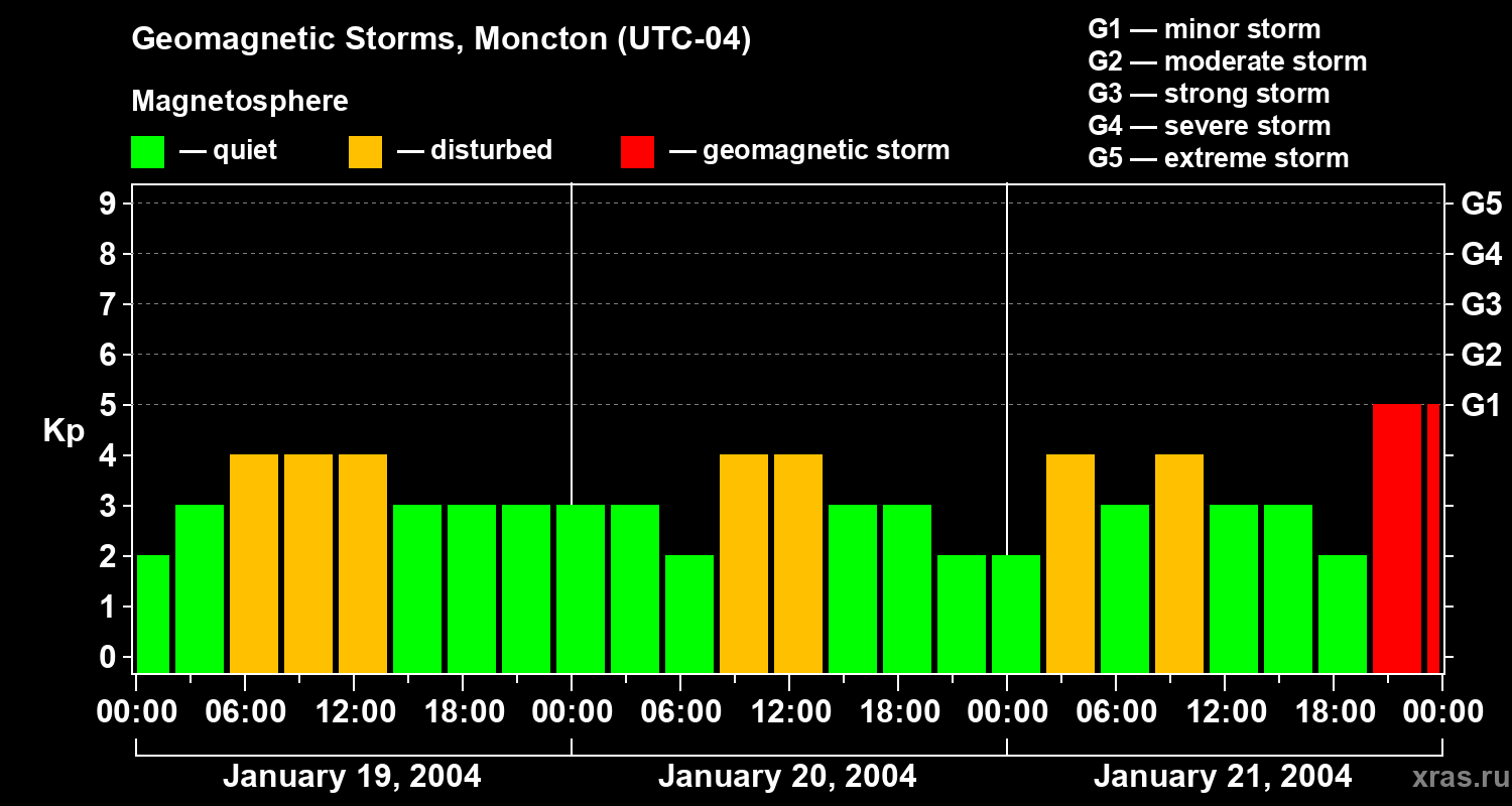 Geomagnetic storms in Moncton on Jan 21, 2004