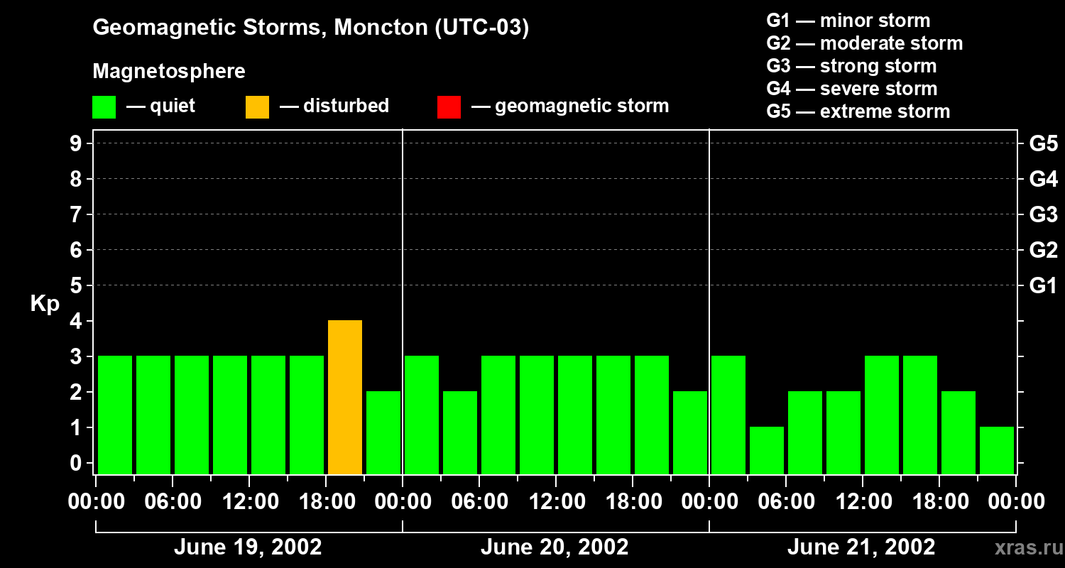Geomagnetic storms in Moncton on Jun 21, 2002