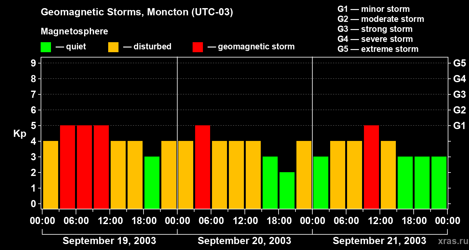 Geomagnetic storms in Moncton on Sep 21, 2003