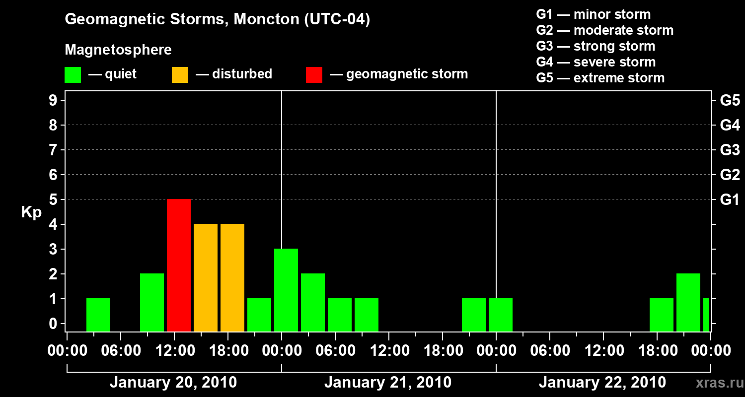 Geomagnetic storms in Moncton on Jan 22, 2010