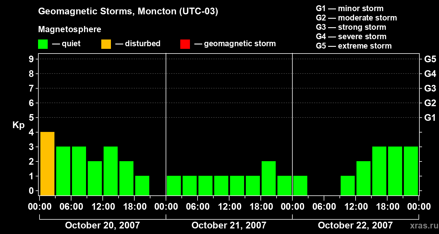 Geomagnetic storms in Moncton on Oct 22, 2007