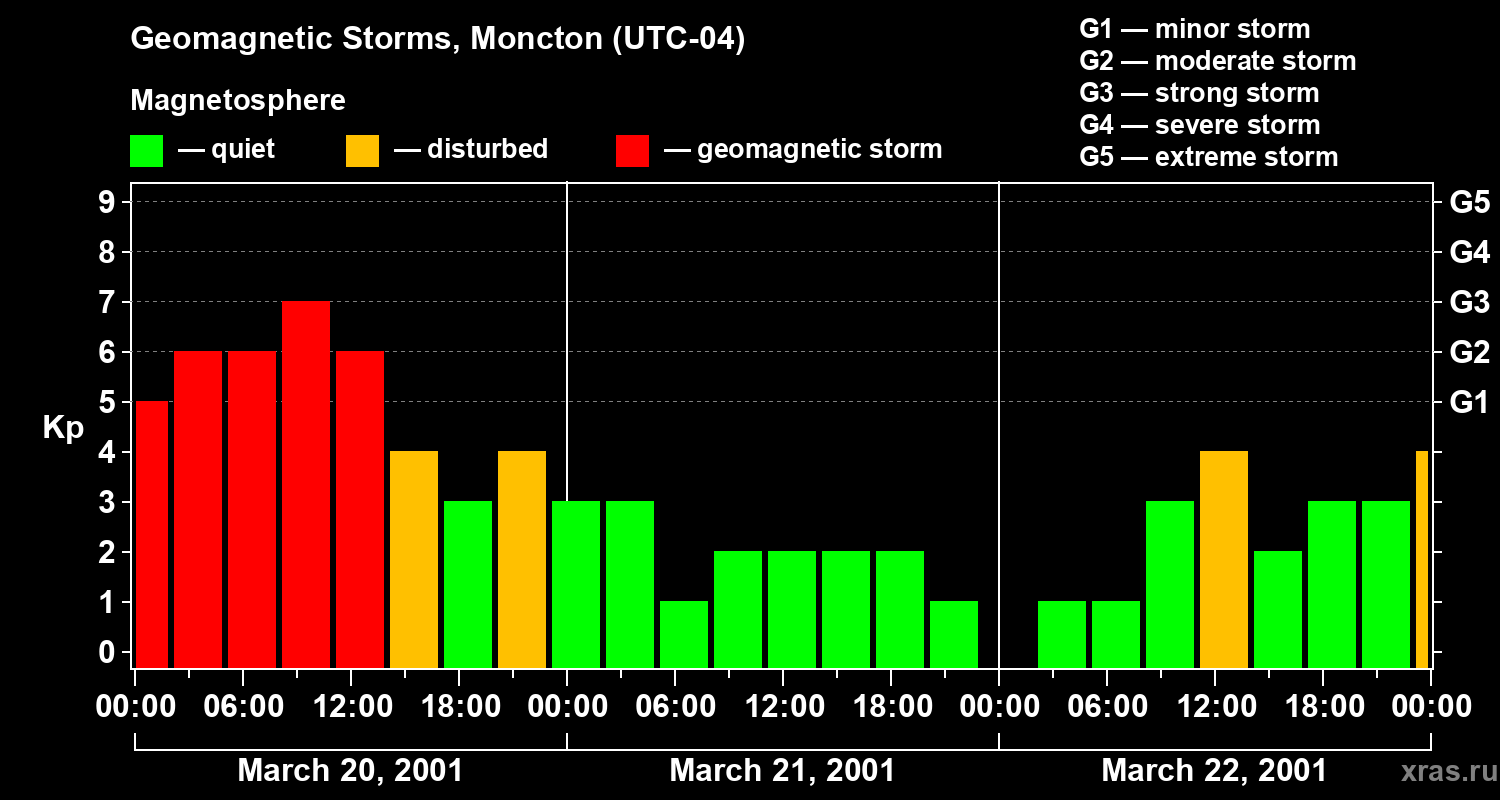 Geomagnetic storms in Moncton on Mar 22, 2001
