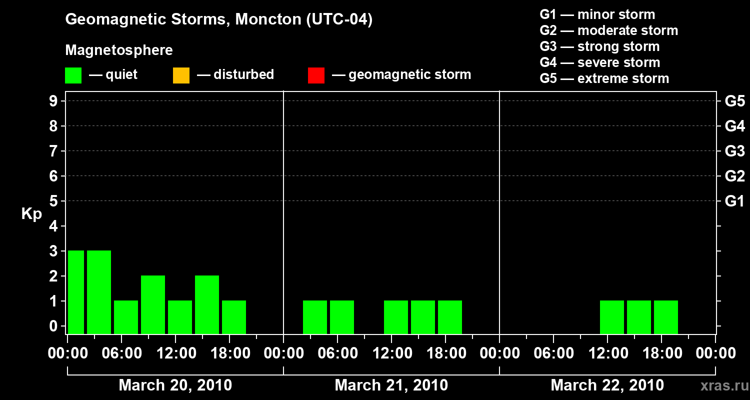 Geomagnetic storms in Moncton in March 2010