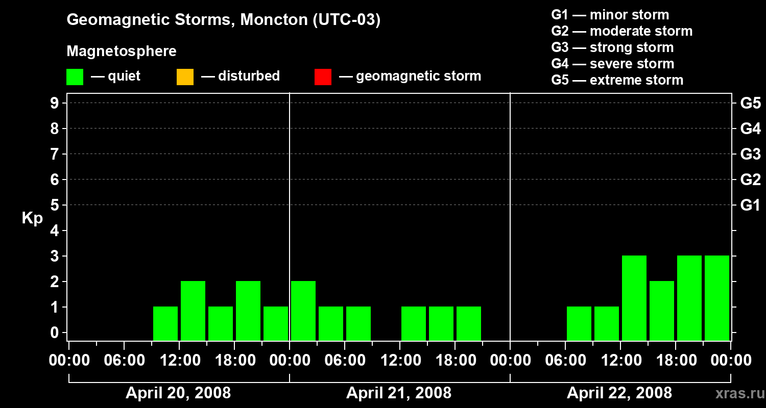 Geomagnetic storms in Moncton — Apr 22, 2008