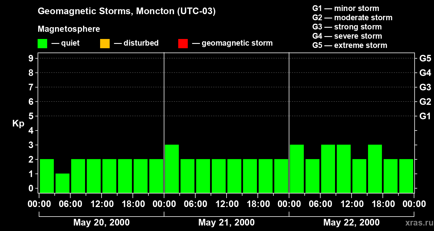 the Earth's magnetosphere was quiet (Kp = 3.00)