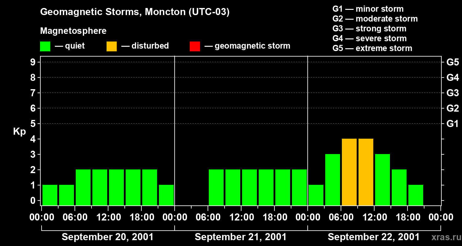 Geomagnetic storms in Moncton on Sep 22, 2001