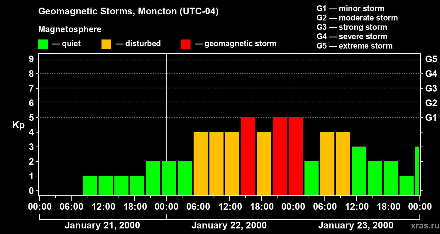 Geomagnetic storms in Moncton on Jan 23, 2000