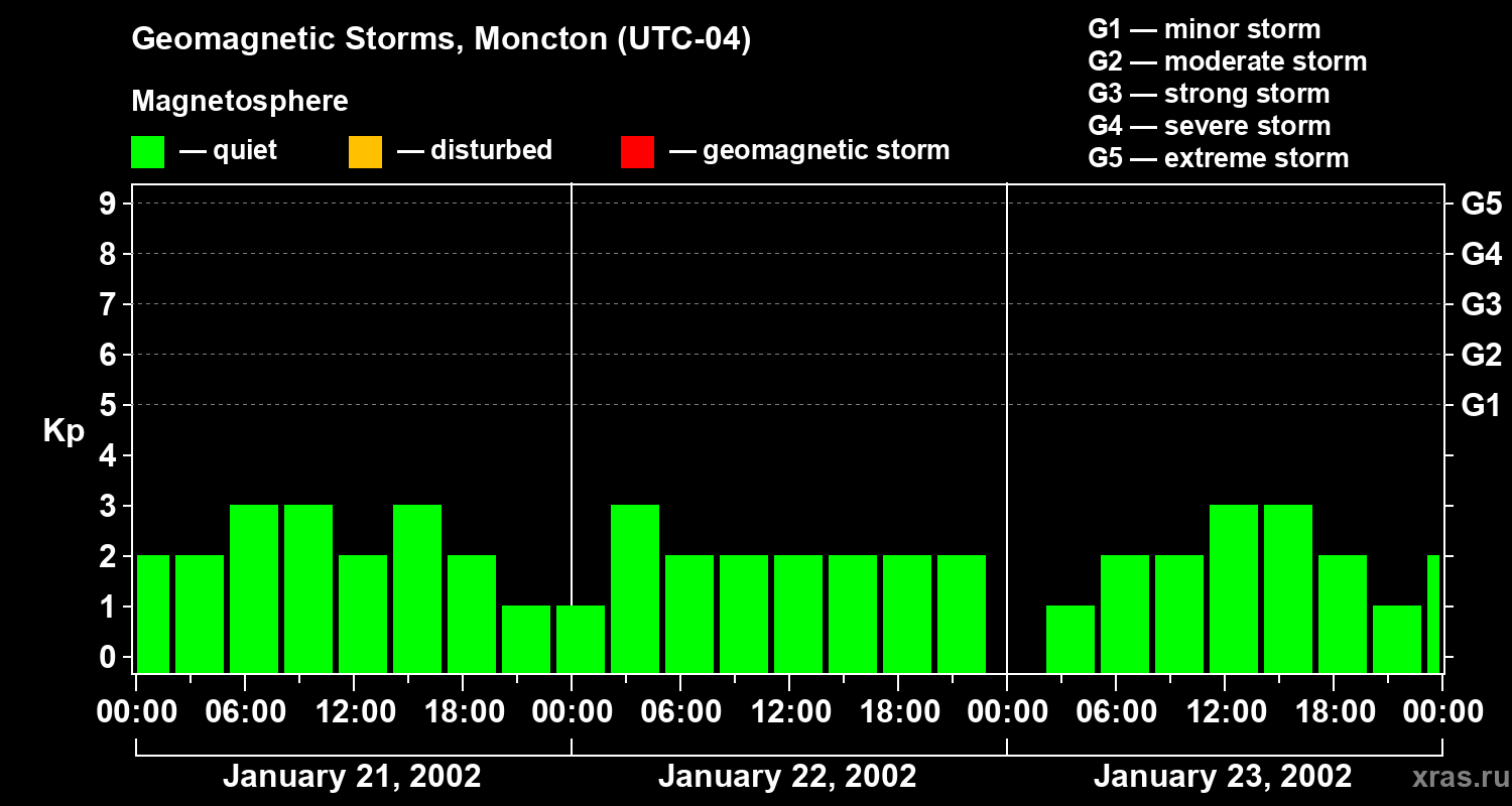 Geomagnetic storms in Moncton on Jan 23, 2002