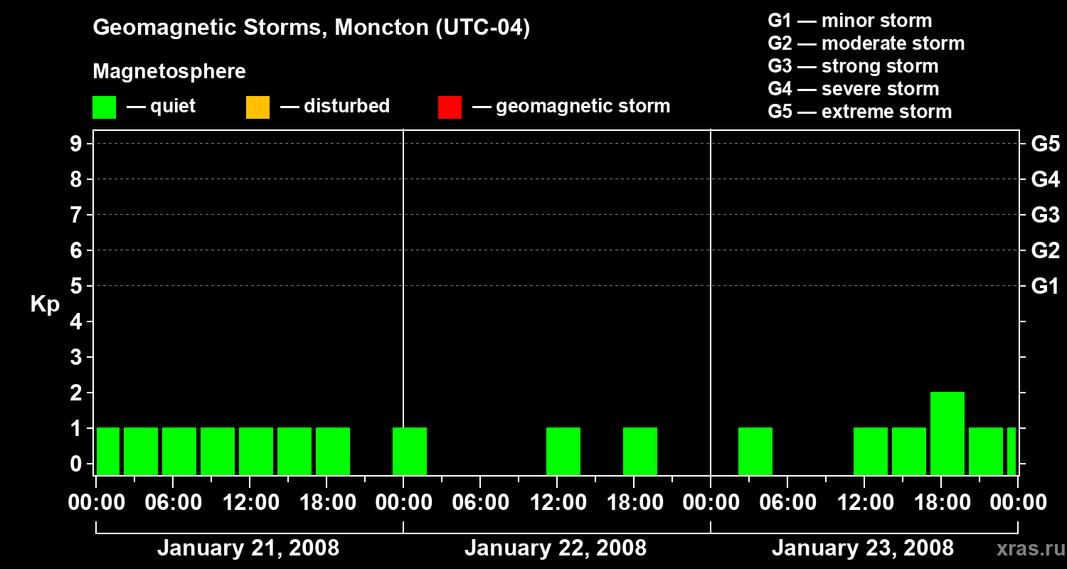 Geomagnetic storms in Moncton on Jan 23, 2008
