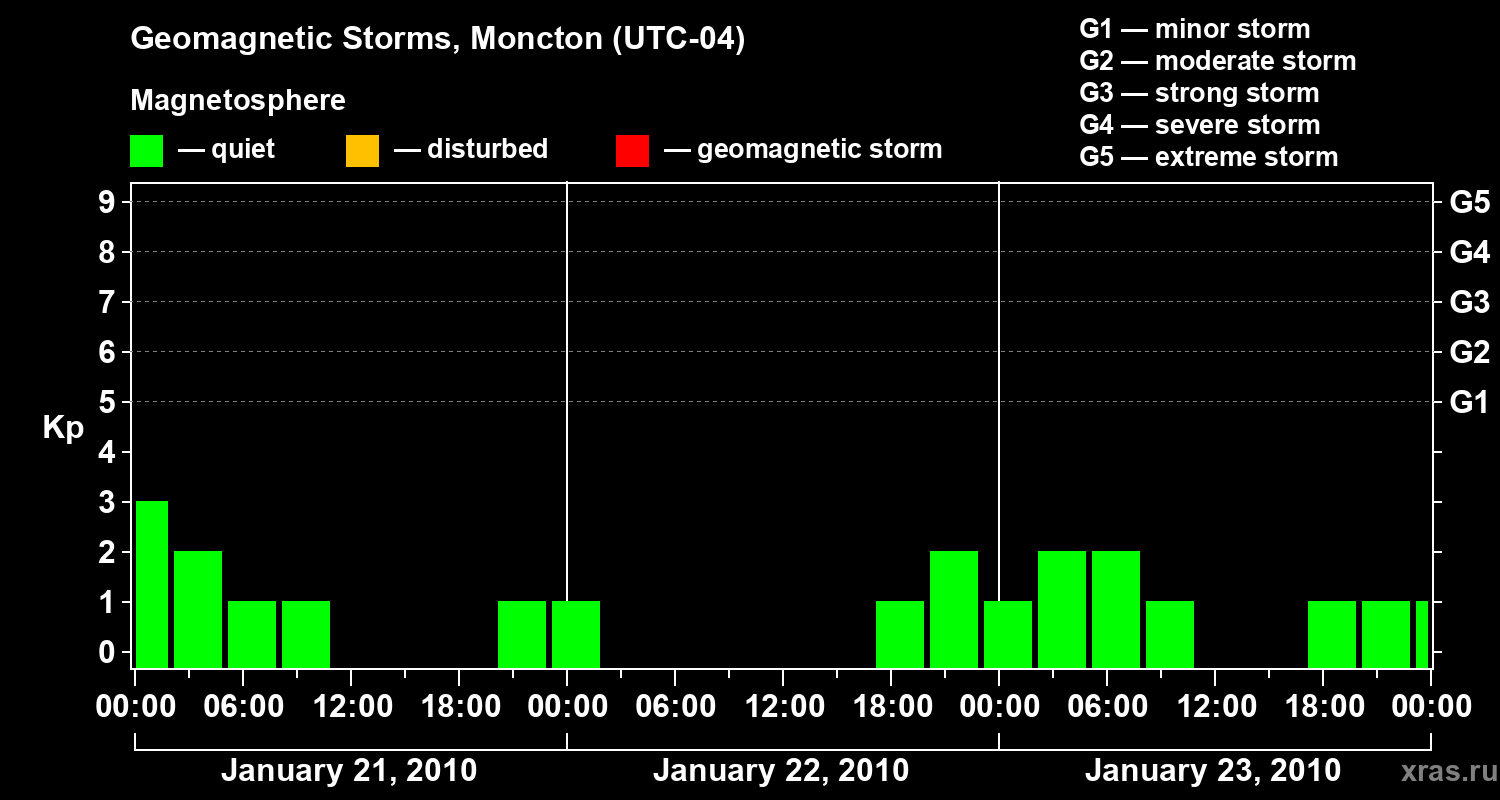 Geomagnetic storms in Moncton on Jan 23, 2010