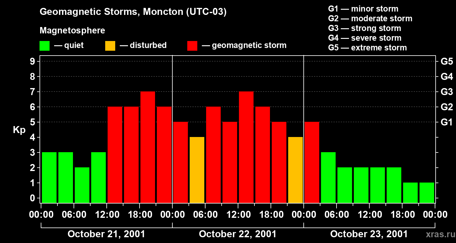 Geomagnetic storms in Moncton on Oct 23, 2001