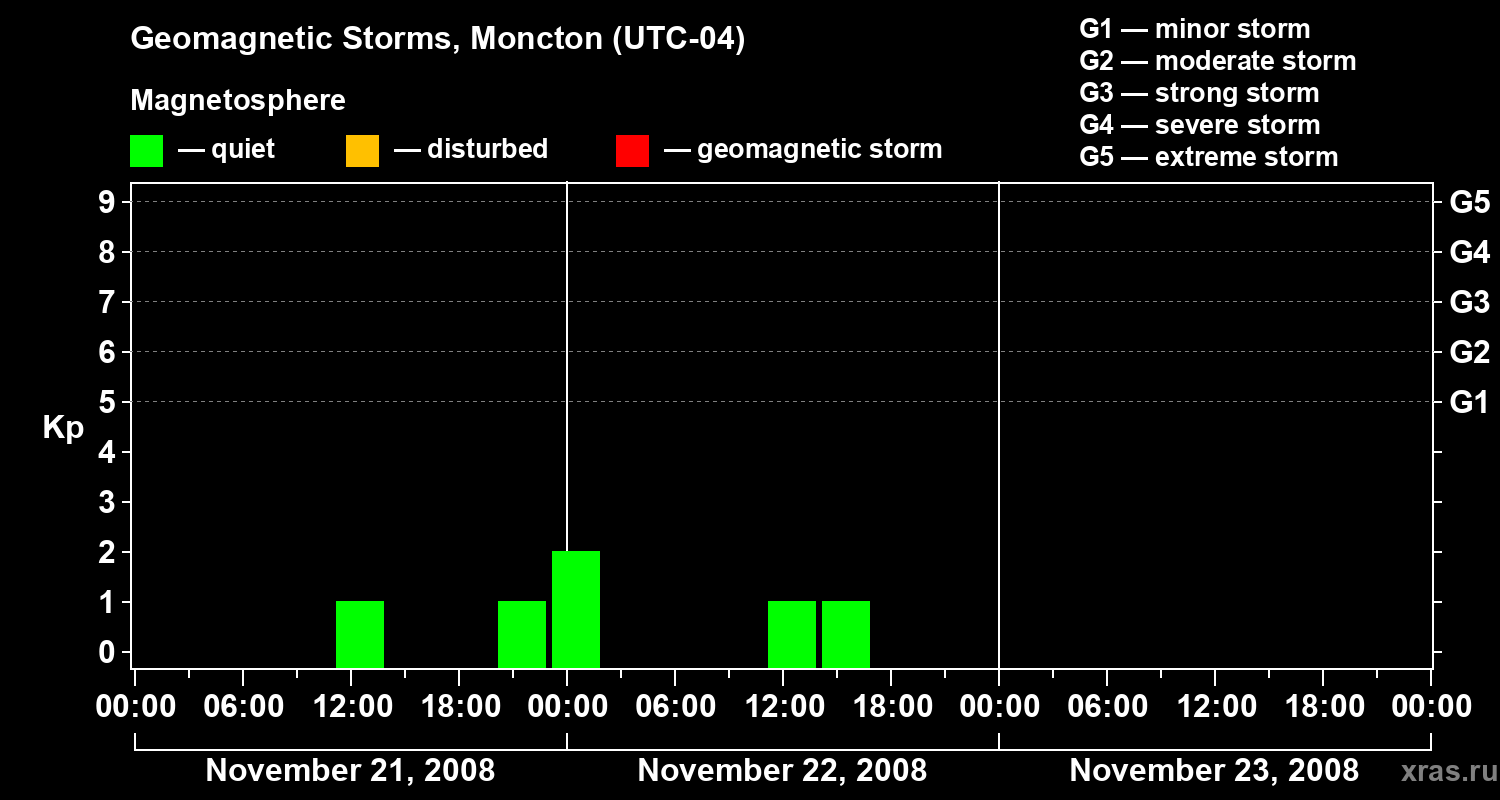 Geomagnetic storms in Moncton on Nov 23, 2008