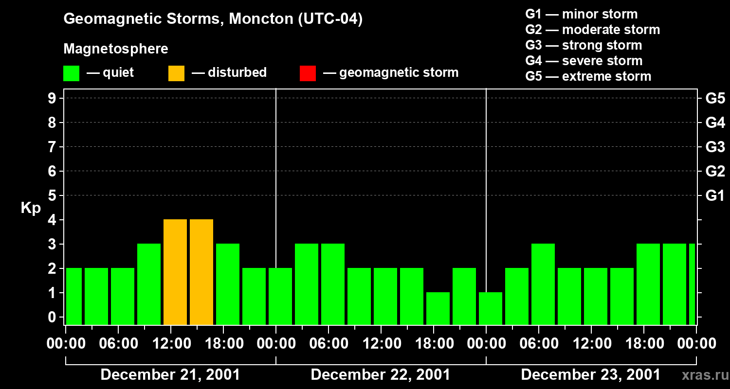 Geomagnetic storms in Moncton on Dec 23, 2001