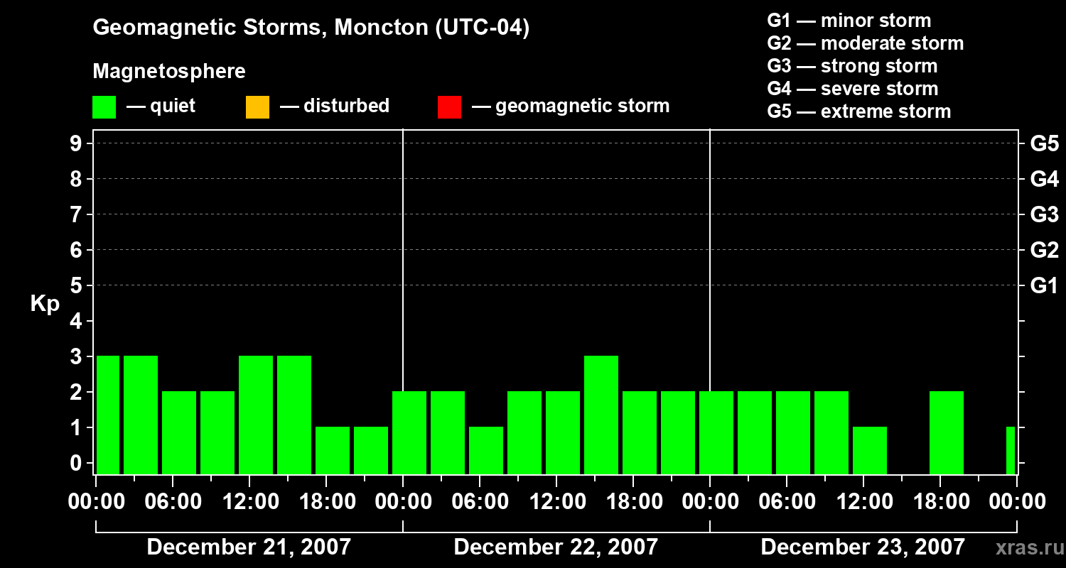 Geomagnetic storms in Moncton on Dec 23, 2007