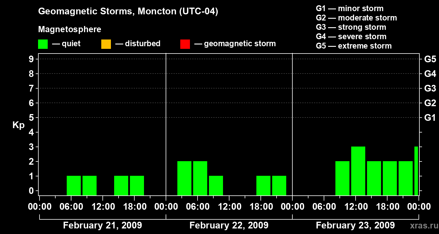 Geomagnetic storms in Moncton on Feb 23, 2009