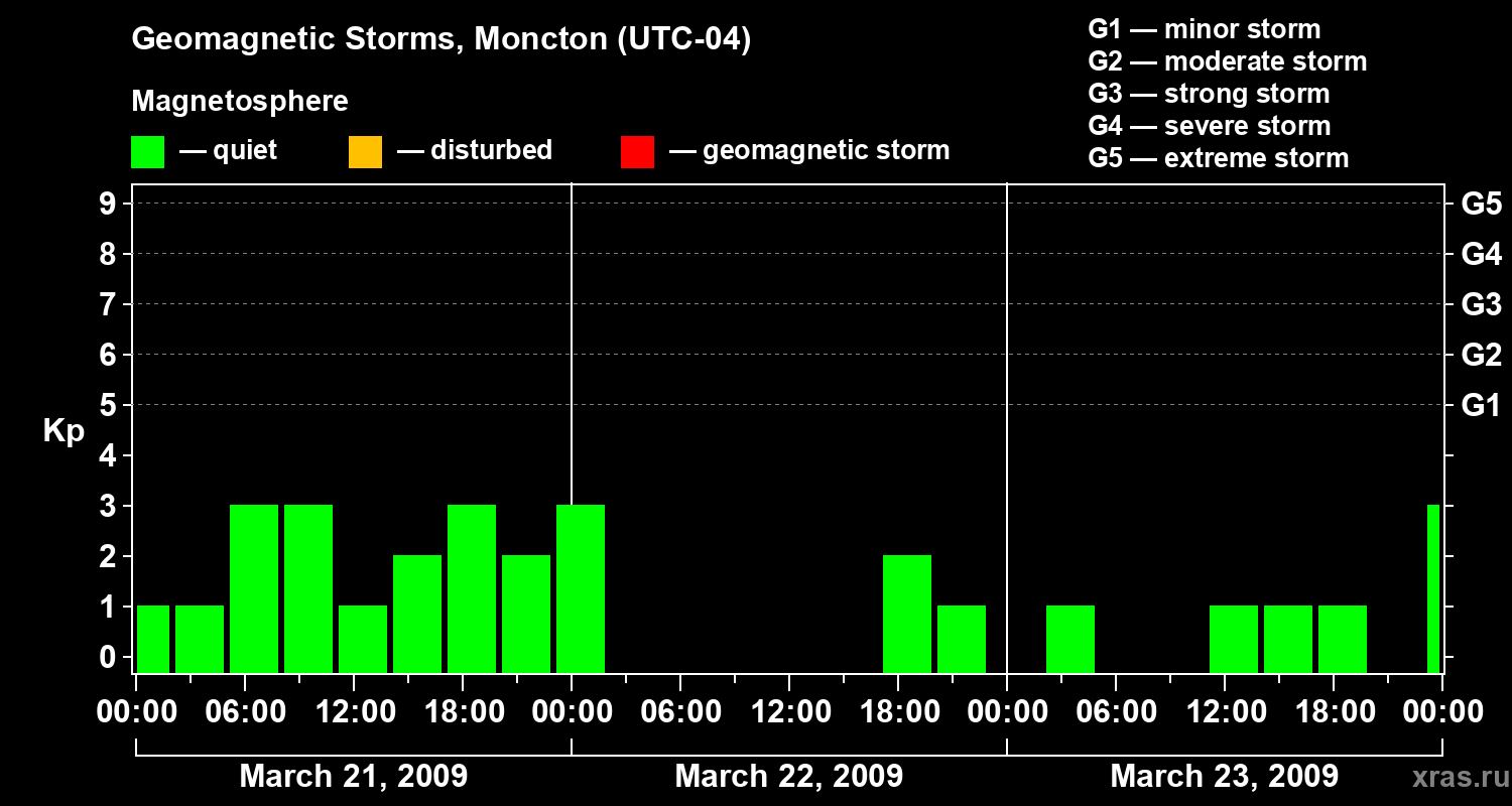 Geomagnetic storms in Moncton — Mar 23, 2009