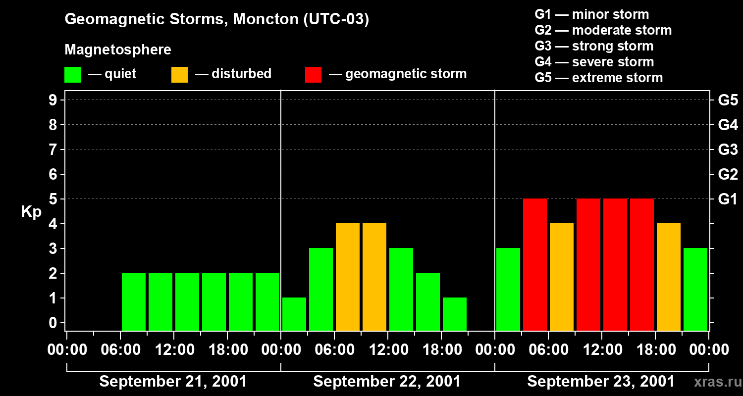 Geomagnetic storms in Moncton on Sep 23, 2001