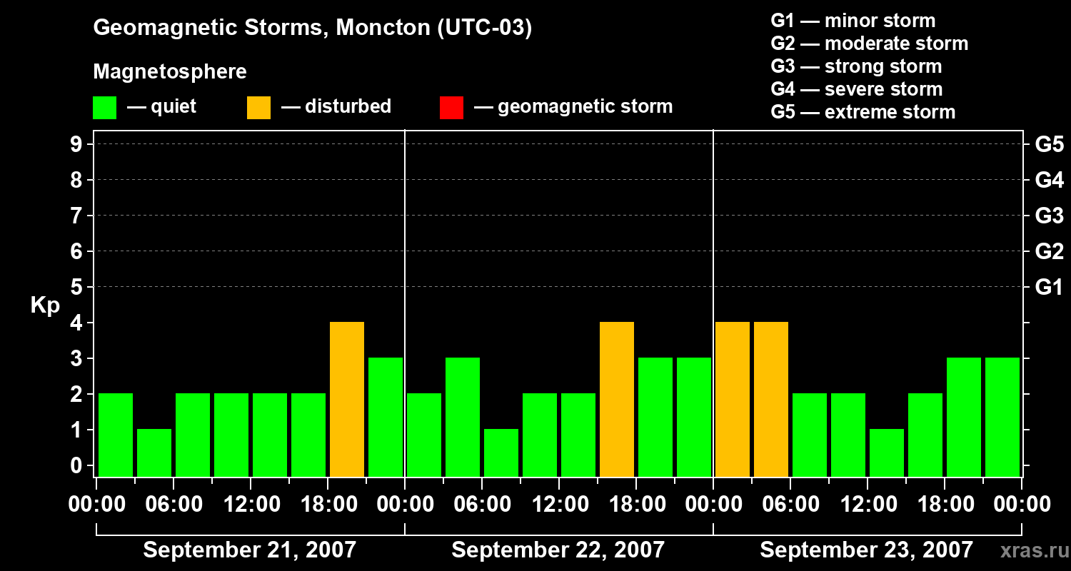 Geomagnetic storms in Moncton — Sep 23, 2007
