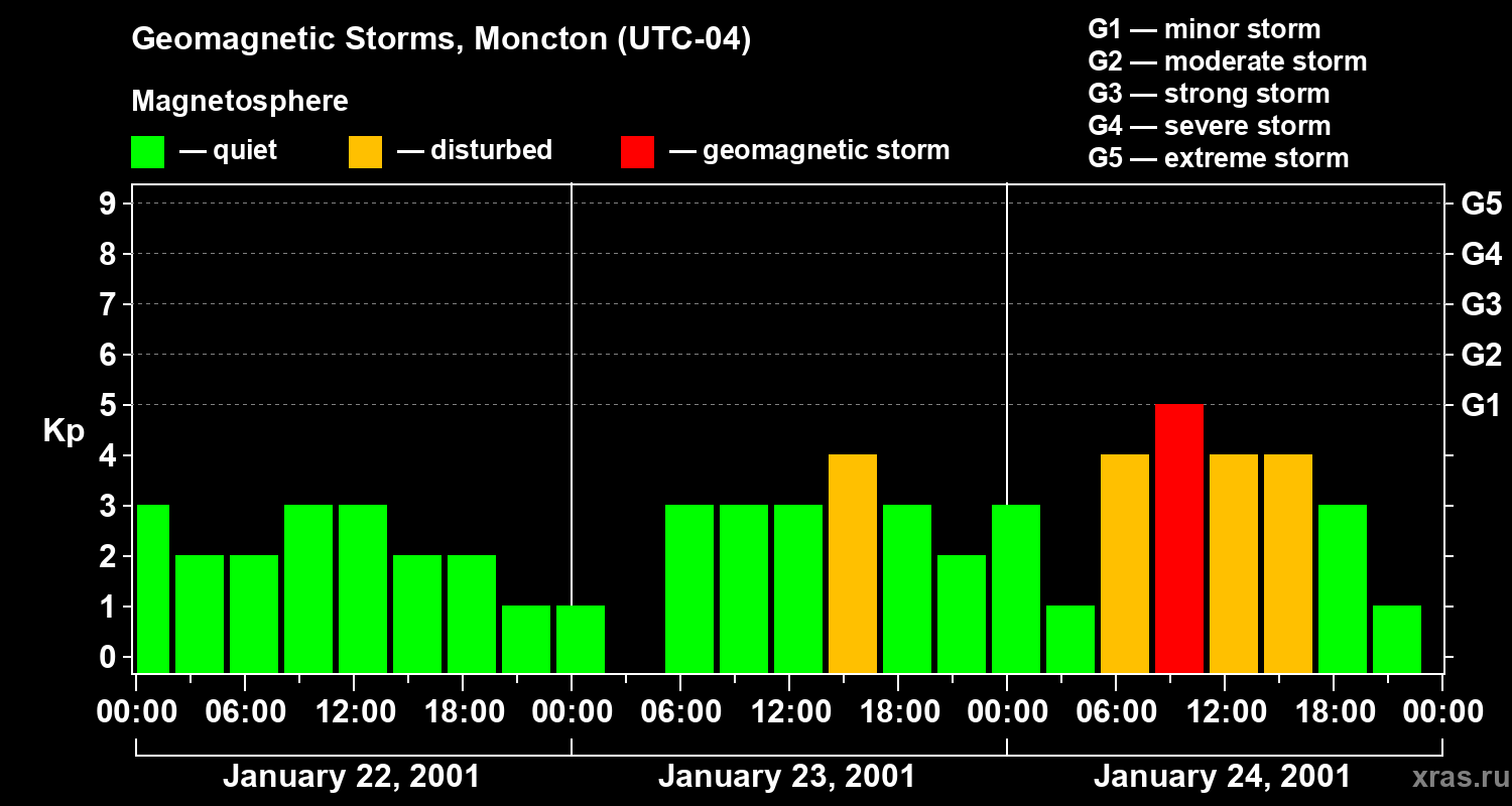 Geomagnetic storms in Moncton on Jan 24, 2001