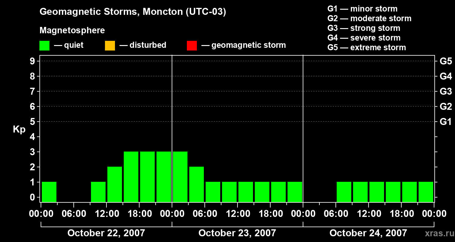 Geomagnetic storms in Moncton on Oct 24, 2007