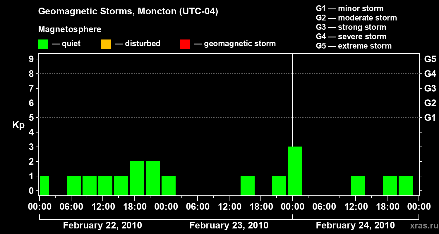 Geomagnetic storms in Moncton on Feb 24, 2010