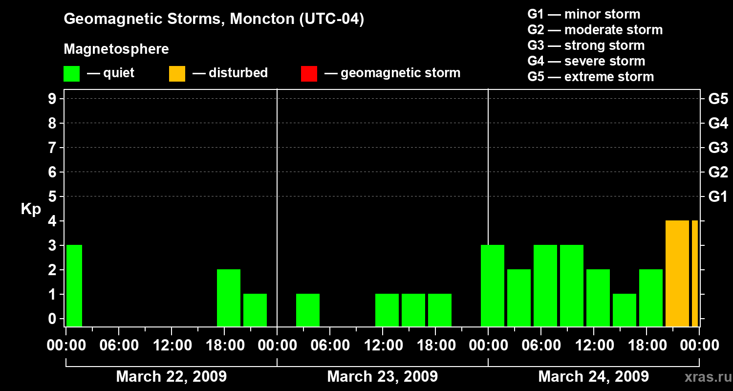 Geomagnetic storms in Moncton — Mar 24, 2009
