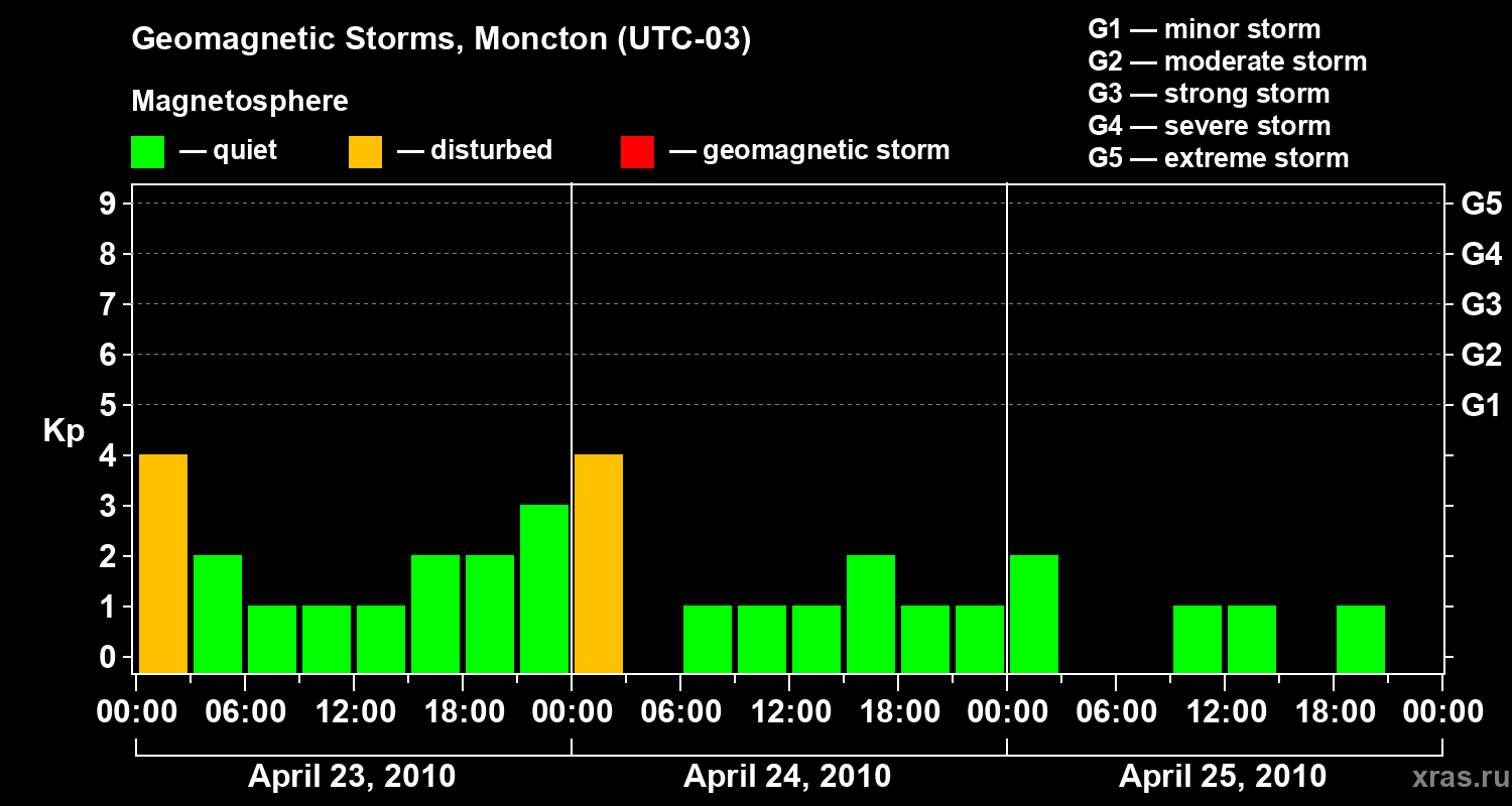 Geomagnetic storms in Moncton in April 2010