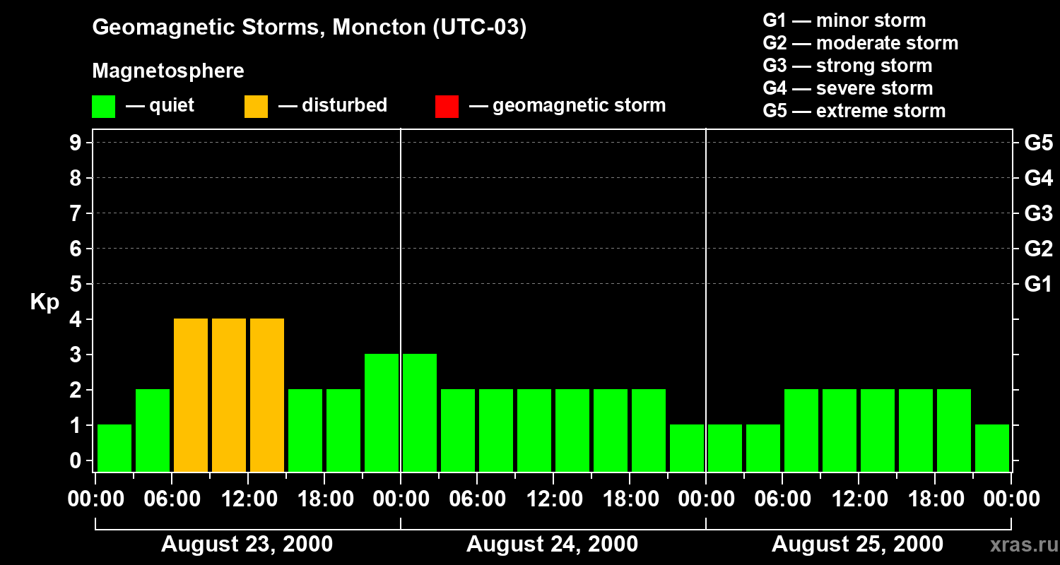 Geomagnetic storms in Moncton on Aug 25, 2000