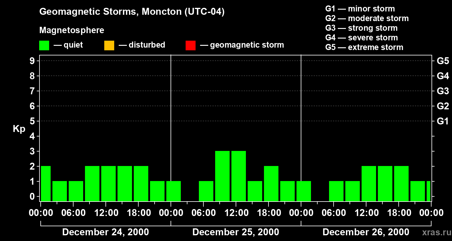 Geomagnetic storms in Moncton on Dec 26, 2000
