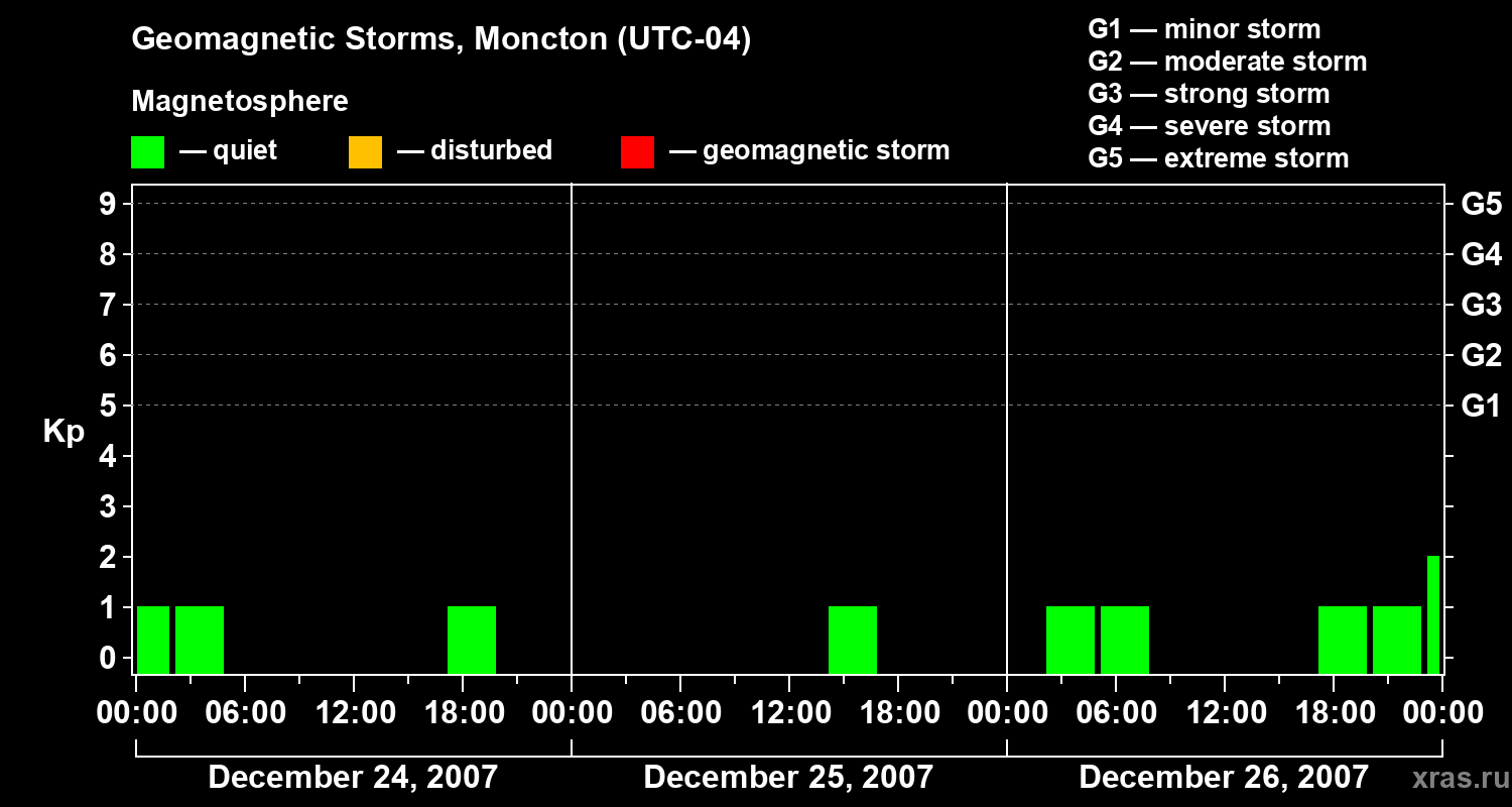 Geomagnetic storms in Moncton on Dec 26, 2007